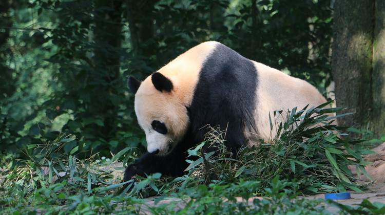 为康复疗养的老年大熊猫剪竹叶【都江堰基地和卧龙基地有此活动,雅安基地无】
